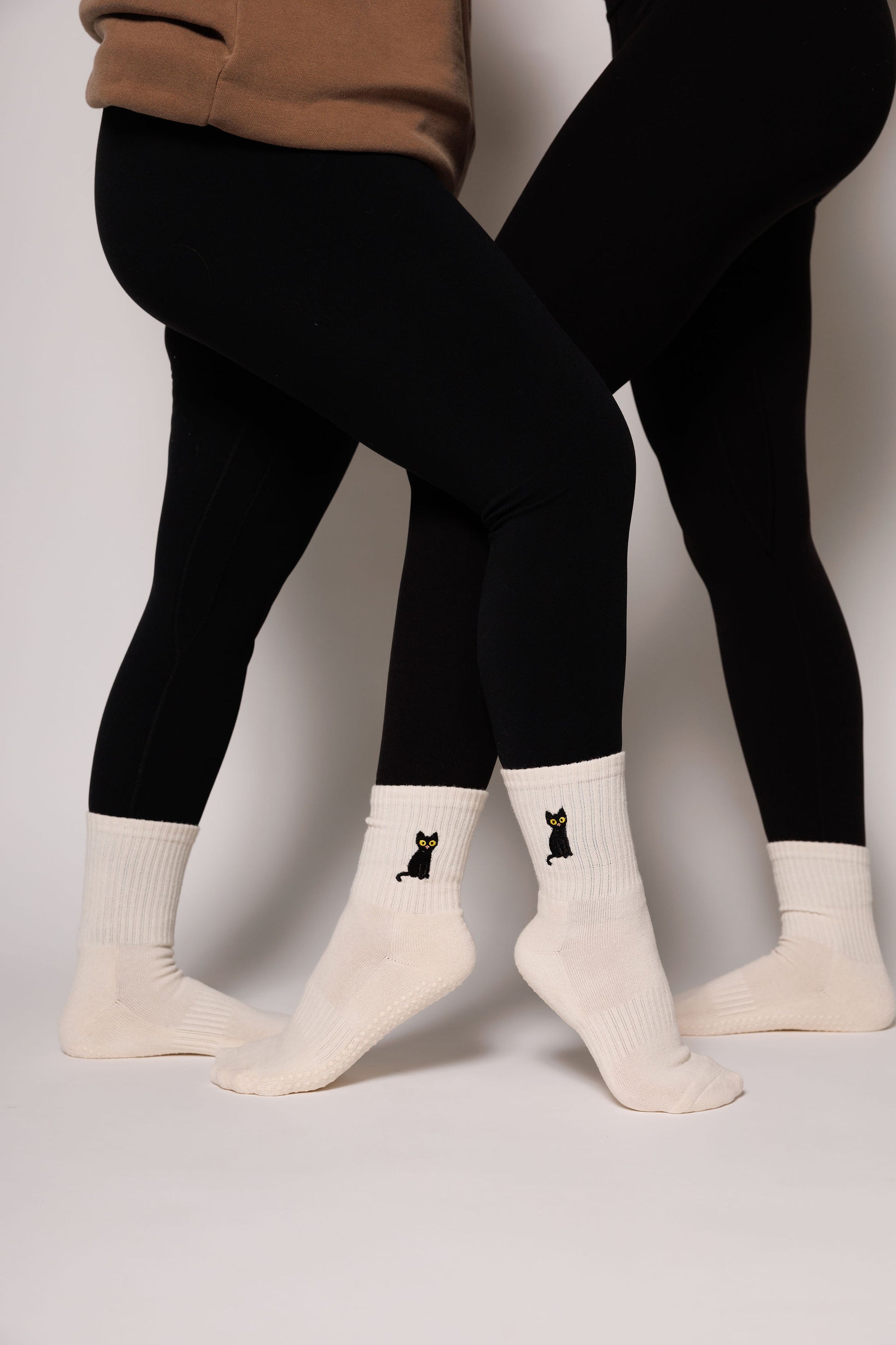 Sleek, versatile, and a little mysterious. 🖤 The Black Cat Grip Socks go with everything, hold steady through every move, and add just the right amount of edge to your fall lineup.